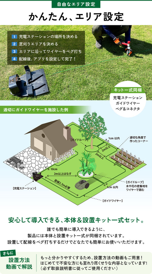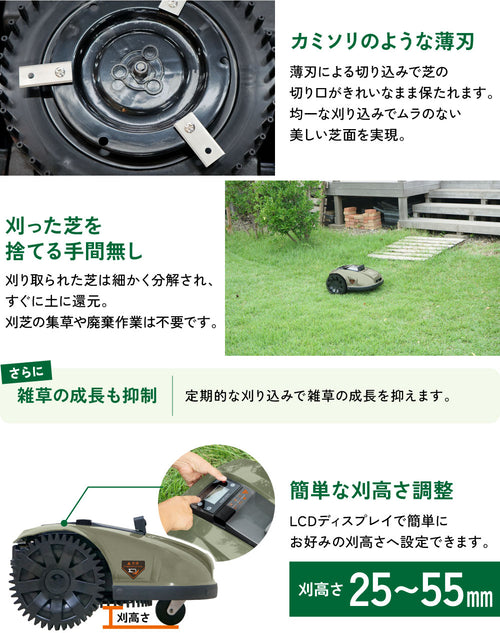 ■広い庭向け 入り組んだ形状の庭も対応 ■超音波センサー搭載! ペットや子供のおもちゃなど動く対象物も検知・回避 ■本体でも設定可能 スマホが手元になくても本体ディスプレイで操作可能 |