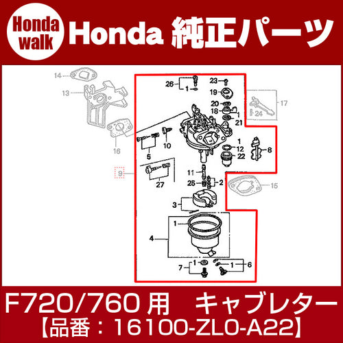 ホンダ純正部品F720/760用キャブレターASSY(BE64J)【16100-ZL0-A22】