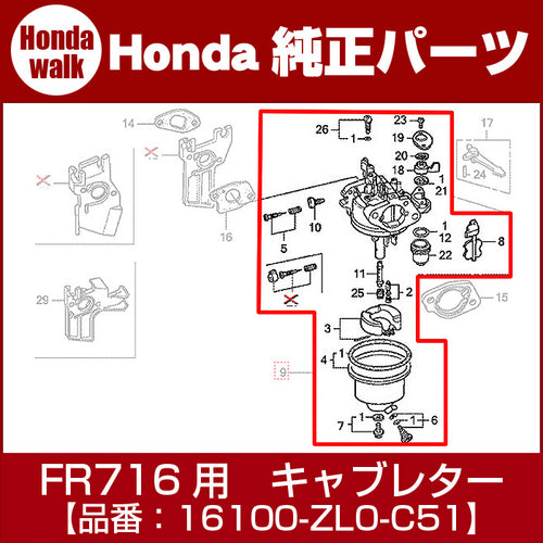ホンダ純正部品FR716用キャブレターASSY(BE59D)【16100-ZL0-C51】