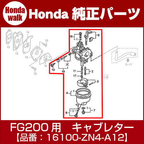ホンダ純正部品FG200用キャブレターASSY(BF31C)【16100-ZN4-A12】