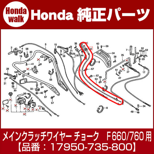 /ホンダ耕運機 メインクラッチワイヤー17950-735-800 チョーク 対応機種:F660、F760用