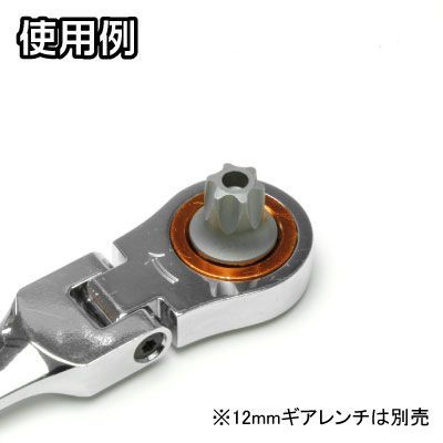 12mm ギアレンチに差し込んで使用する、超ショートいじり止め付きヘックスローブビットです。