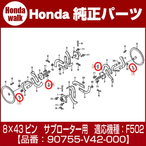 ホンダ純正パーツ ローターピン・抵抗棒取付ピン(Φ8×43) 【品番 90755-V42-000 】