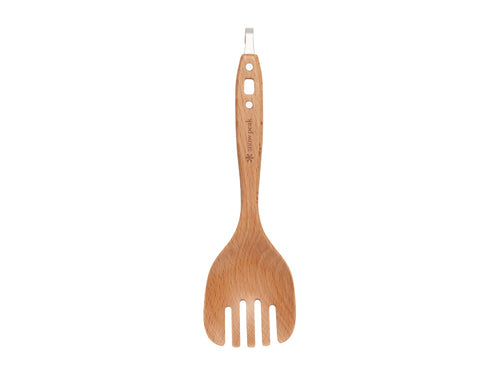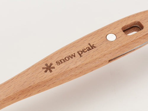 キッチンツールセットと同様に木材とステンレスを使用したサーバーフォークです。フックはIGTのレールに引っ掛けることができます。角のRがHOME&CAMPクッカーなどの角に沿った形で料理を残さず掬い取ることができます。キャンプシーンに限らず、家でも使いたくなる一本です。