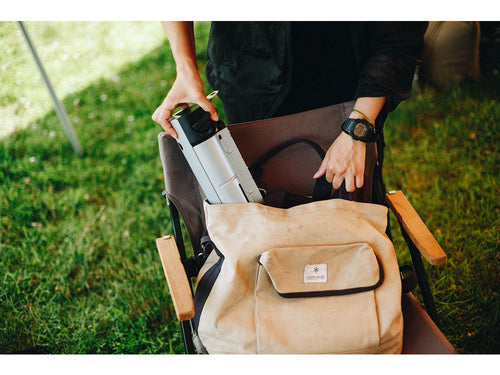 直立するので、キッチンスペースでも収納に場所をとらず、インテリアにも馴染みやすいカラーリングに仕上げました。使いたいときに手の届きやすい場所に置いておくことができて、使わないときにもインテリアの邪魔になりません。バッグの中にも納まるコンパクトなサイズ感で、キャンプフィールドはもちろんのこと、ピクニックやお花見などにも気軽に持ち出すことができます。