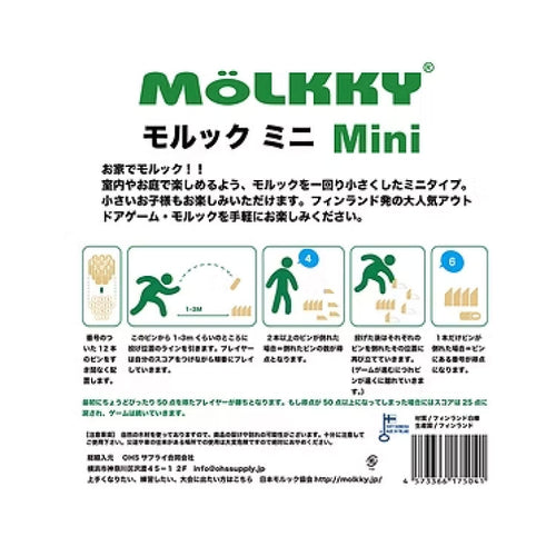 室内やお庭で楽しめるよう、モルックを一回り小さくしたミニタイプ。小さいお子様もお楽しみいただけます。フィンランド発の大人気アウトドアゲーム・モルックを手軽にお楽しみください。