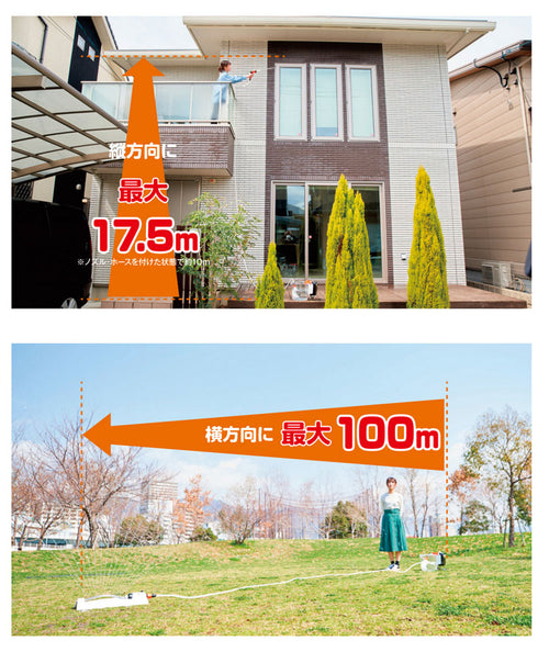 | 備考 | ※1:1充電あたり。最大揚程時の運転時間です。気温や使用状況によって異なります。※2:このポンプは【清水専用】です。それ以外の液体を使用した場合には保証対象外となります。・清水とは、水道水、濁りのない井戸水・農業用水を示します。ただし、清水でも飲料水や食品用には使用できません。・使用不可液体例:海水、汚水、農薬、消毒液、灯油、有機溶剤など※3:充電器は含みません。※4:昇圧器などのトランス類を使用したり、直流電源やエンジン発電機では使用しないでください。発熱・火災のおそれがあります。 |