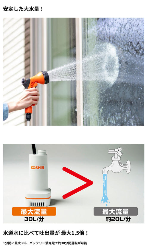 KOSHINが、有りそうでなかった「充電式水中ポンプ」を開発致しました。