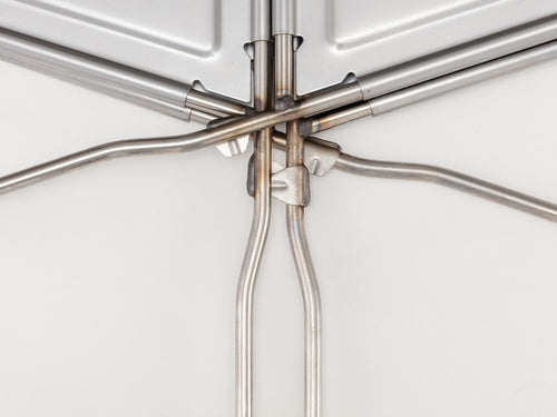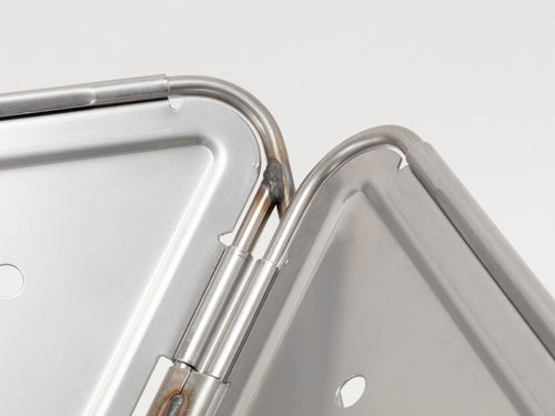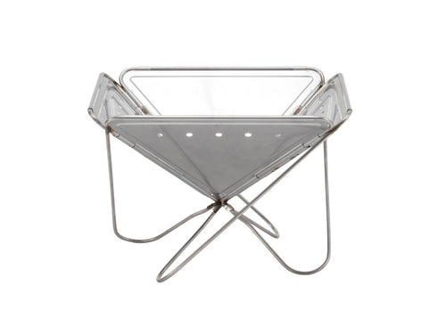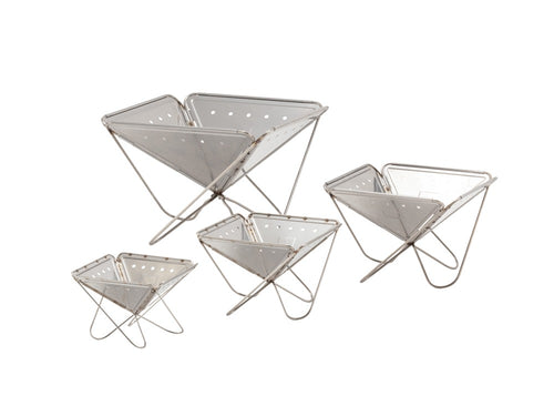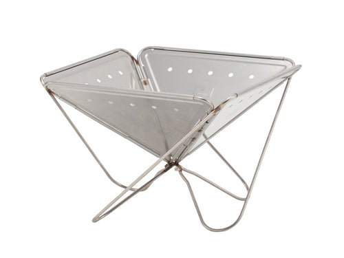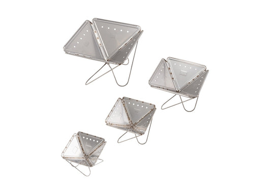 シンプルな開閉機構、タフなステンレス材質、剛健なスペックはそのままに、これまで最大であったLサイズの3倍の容積を備えています。薪のサイズに神経を使うことなくくべることができるため、焚火本来の楽しみが広がるアイテムとなっています。