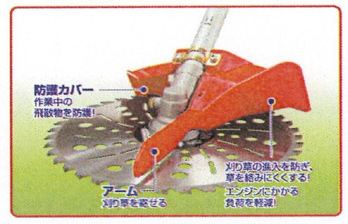 ▼刈りながら草を寄せる「集草アーム」と「防護カバー」が一体化した画期的なカバーです