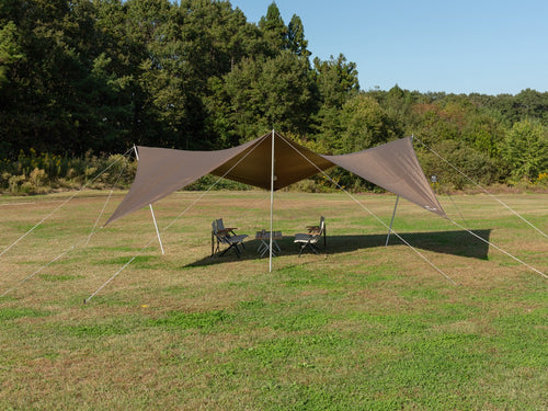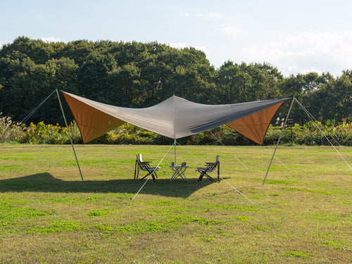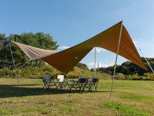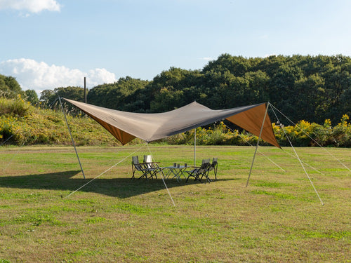 人の動線上を高く、中央を低く。タープの既成概念を覆す新しいコンセプトのタープ。