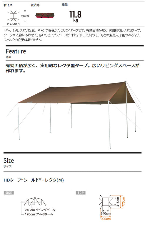 ● セット内容:タープ本体、ウイングポール(240cm×2)、アルミポール(170cm×4)、ソリッドステーク40(×4)、ソリッドステーク30(×4)、自在付ロープ(二又用9m×2、3m×4)、ぺグハンマーPro.C、ポールケース、ロープケース、ぺグ&ハンマーケース、キャリーバッグ