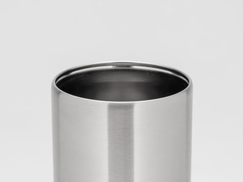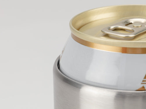 「缶の飲み物を冷たいまま飲みたい」。そんな声をきっかけに、引き算の考え方で開発された缶クーラー。真空二重構造による優れた保温性はもちろんのこと、シンプルな形状の中でこだわったのは、動作の心地よさです。限界まで詰めた内筒寸法と内側に設けた3点の突起により、吸い込まれるように缶がスーッと入り、最後にクッと押し込むことで缶を固定できます。0.1mm単位で何十種類も作り直してたどり着いた小さな感覚の一つひとつにスノーピークらしさを感じていただけるアイテムです。