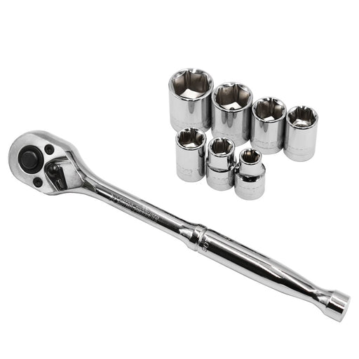 元の価格 ¥2,739(税込) - 元の価格 ¥2,739(税込)元の価格¥2,739(税込)¥2,739(税込) - ¥2,739(税込)現在の価格 ¥2,739(税込)| /108Tギアだから、送り角約3.4°の脅威の細かさ!・送り角、108Tのラチェットハンドルです。・細かく送ることができるので、狭い場所での作業に適しています。 全長 180mm 重量 216g 差込角 3/8DR (9.5mm) ギア数 108T 機能 プッシュリリース ...