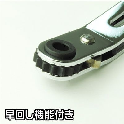 ラチェットハンドルは、早回し機能付きで、指先でギヤを回す事により早回し可能です。