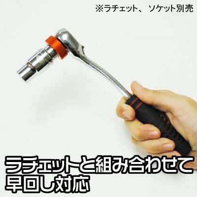 ラチェットなどに取付ければ、ボルトナットの初期締めや緩めなど、早回しが可能になります。