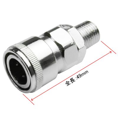 取り付けがメネジタイプのコンプレッサーなどに使用できる、オネジタイプのエアソケットです。