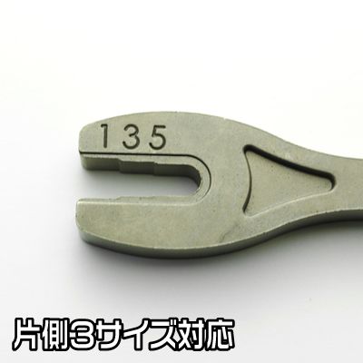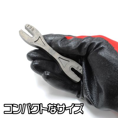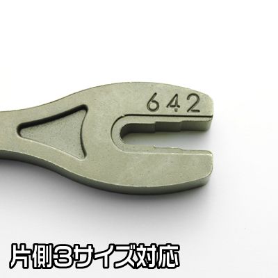 レンチには左右それぞれ3サイズ、合計6種類のサイズがあり、様々なスポークに対応します。