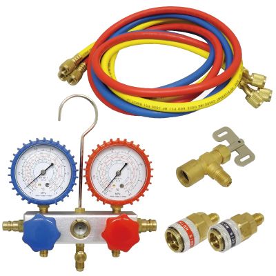 R134a専用の冷媒エアコン診断、エアコンガス充填・回収を行う際に使用するゲージセットです。