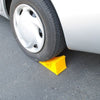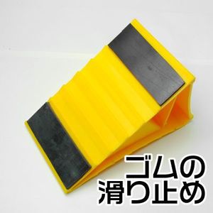 駐車時やジャッキアップの際に、車輌が動かないようタイヤへ設置する輪止めです。