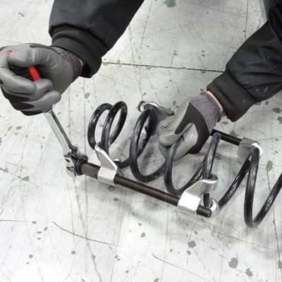 自動車のサスペンションを交換する際に、コイルスプリングを縮めて保持する為の特殊工具です。