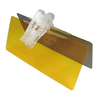 グレーのシールドは昼間用で太陽の光を軽減し、イエローのシールドは夜間用でヘッドライトやバックランプの光を軽減します。