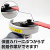 保護カバーに接触しにくいように、ハンドルとヘッドの間に角度が付けられています。