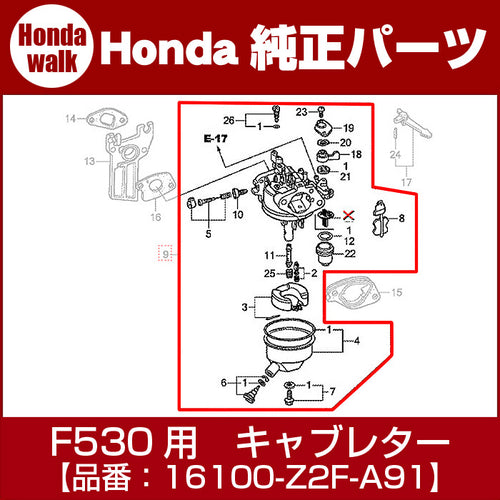 ホンダ純正部品F530用キャブレターASSY(BE06V)【16100-Z2F-A91】