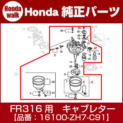 ホンダ純正部品FR316用キャブレターASSY(BE12M)【16100-ZH7-C91】
