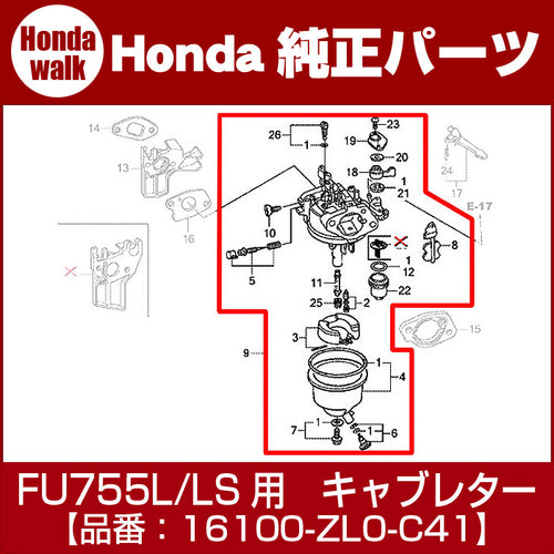 ホンダ純正部品FU755L/LS用キャブレターASSY(BE59E)【16100-ZL0-C41】