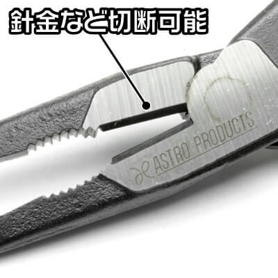 根元には、切断刃が付いているので、タイラップや細い針金の切断に便利です。