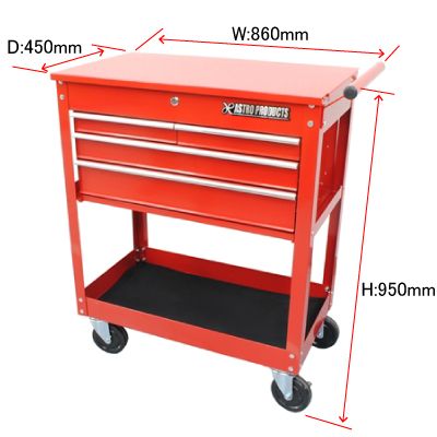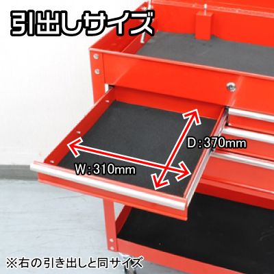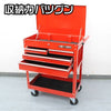 整理しやすい、大小4つの引き出しと、大きめの工具も収納できる、ツールワゴンです。
