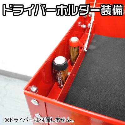 トップ部フタ付き収納スペースには、ドライバーホルダーを装備し、使用頻度の高い工具の収納などに最適です。
