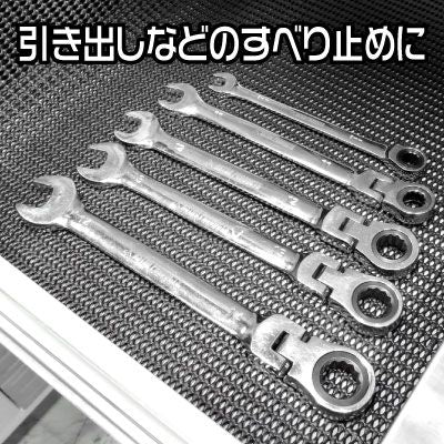 工具箱の引き出しや車のダッシュボード上で、物を置く際の滑り止めに使うマットです。