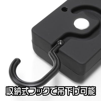 本体の裏面には、収納式の吊り下げ用フックと、マグネットが付いております。