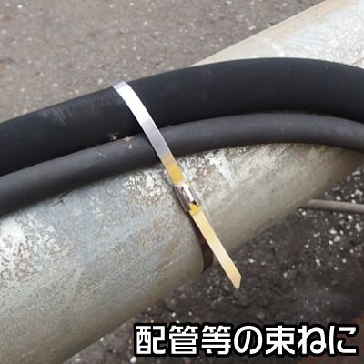 電線やホース等を束ねたり、固定するステンレス結束バンドです。