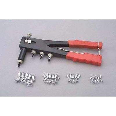 使い方は簡単で、まずナットリベッターの外径に合う穴を空けてから、本体にナットをセットして穴に当てるだけ。