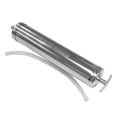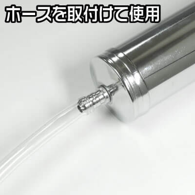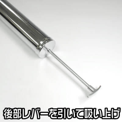 本体にホースを取り付け、後部のレバーを引いてオイルを本体内に吸い上げます。