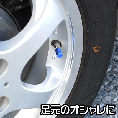 純正品と付け替えるだけで、手軽にドレスアップできるタイヤバルブキャップです。