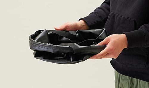 防水加工が施されているので、洗い物入れや水遊び用の入れ物としてさまざまなシーンでお使いいただけます。使わないときは小さく折り畳めるのでどこへでも持ち運びができます。