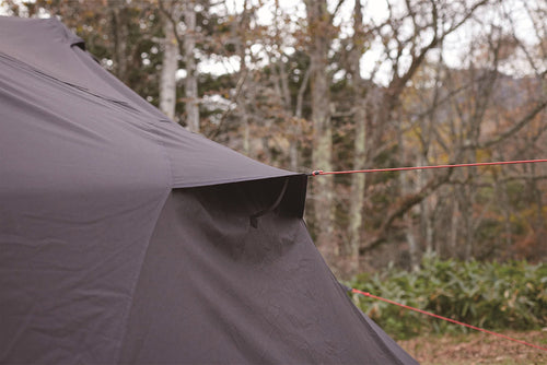また、ファブリックにはTC素材を採用しているので、冬は暖気を逃さず、抜群の遮光性と通気性を兼ね備えたマルチユースなタープ型シェルターです。