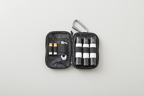 Sサイズはポケットサイズながらミニマライト(LED-100)を3本収納可能です。他にも文具やアメニティ用品入れにもお使いになれます。