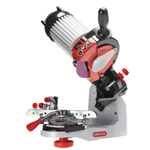 従来モデルの基本構造はそのままに、操作性と安全性をさらに向上させました。パワフルなモーターが作業時間の大幅な短縮を実現。高精度な目立てが素早くできます。また、チェーンの固定、砥石の取付け、目立て角度および切削角度の設定など、鋭い切れ味を甦らせるために必要なセットアップ作業が簡単に行えます。