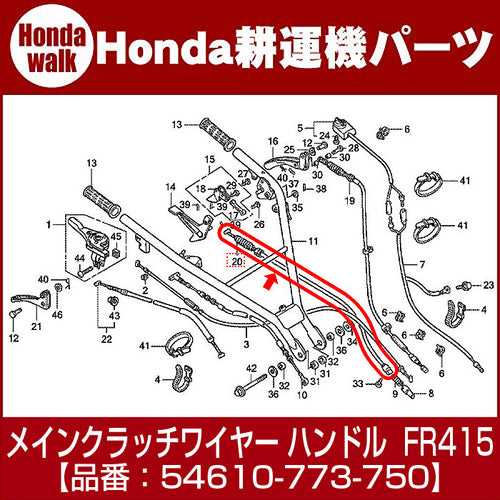 ホンダ耕運機 メインクラッチワイヤー ハンドル54610-773-750 対応機種:FR415(基盤1001047以降)、FR615(基盤1003205以降)、FR715用