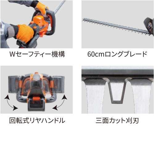 ●60cmのロングブレードで、効率的な作業が行えるだけでなく、背の高い垣根の剪定も余裕にこなせます。