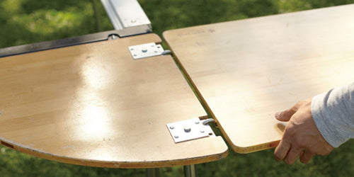 | 仕様 | ● セット内容:天板、ジョイントパーツ(×2) ●材質:竹集成材、アルミニウム合金、ステンレス |