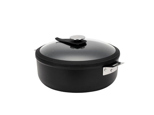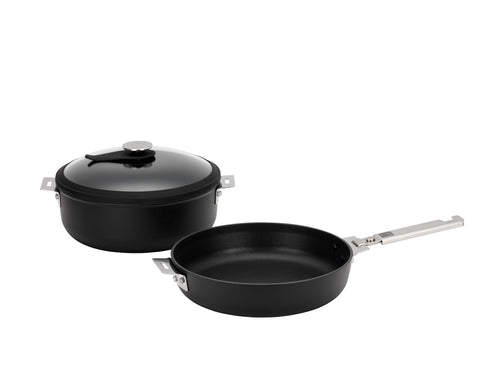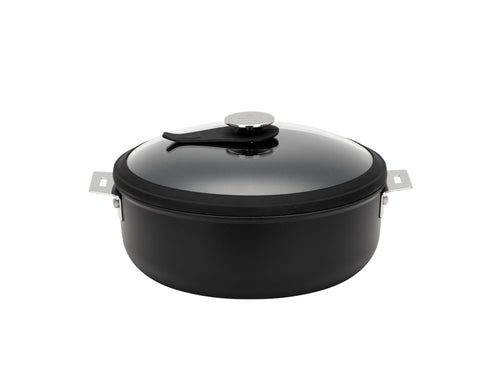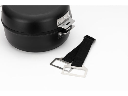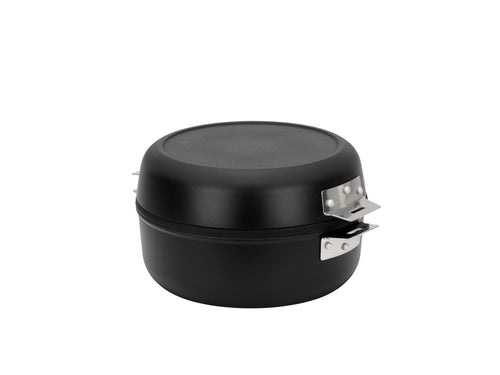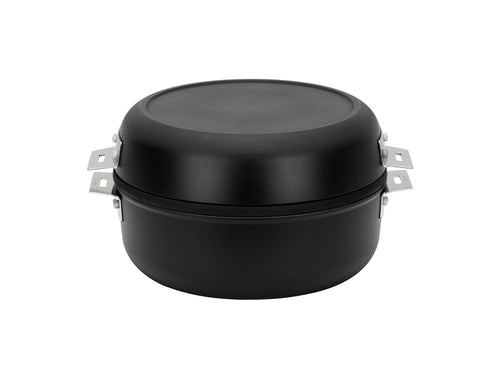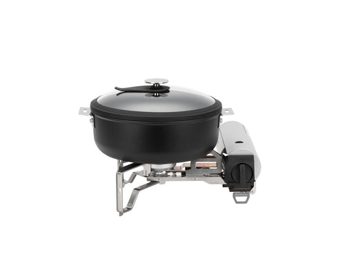 キャンプの食事づくりを、もっと気軽に、楽しく。ガラス蓋の保護と、料理の持ち運びを同時に実現。