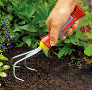 ドイツのデザイン賞「plus x award」を受賞した、握りやすいグリップハンドルが一体となっている"くわ"。片手で土をほぐしたり、雑草を抜くのに適しています。