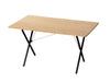 竹集成材の内部にハニカム構造を採用することで、強度を担保しつつ、サイズはそのままで軽量化を図りました。天面にシリーズ名の刻印を入れ、スタンドに黒アルマイト加工を施しています。ワンアクションテーブルは、2枚の天板を開くと、シンクロして内側から脚が現れる。画期的な開閉構造を持つテーブルです。抜群の安定性と清潔感あるデザインでありつつ、軽量性も備えた注目のアイテムです。地上高は66cmと、FDチェアに座ったときに最適な高さの快適基準寸法です。