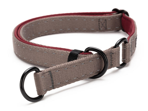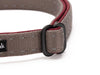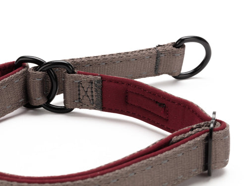 セーフティー指示を出すチョーカータイプの首輪です。犬が常に付けていても負担がかからないようテープで統一し、犬にやさしい設計のチョーカーにしました。犬によって適切な長さになるように長さ調整ができる仕様です。